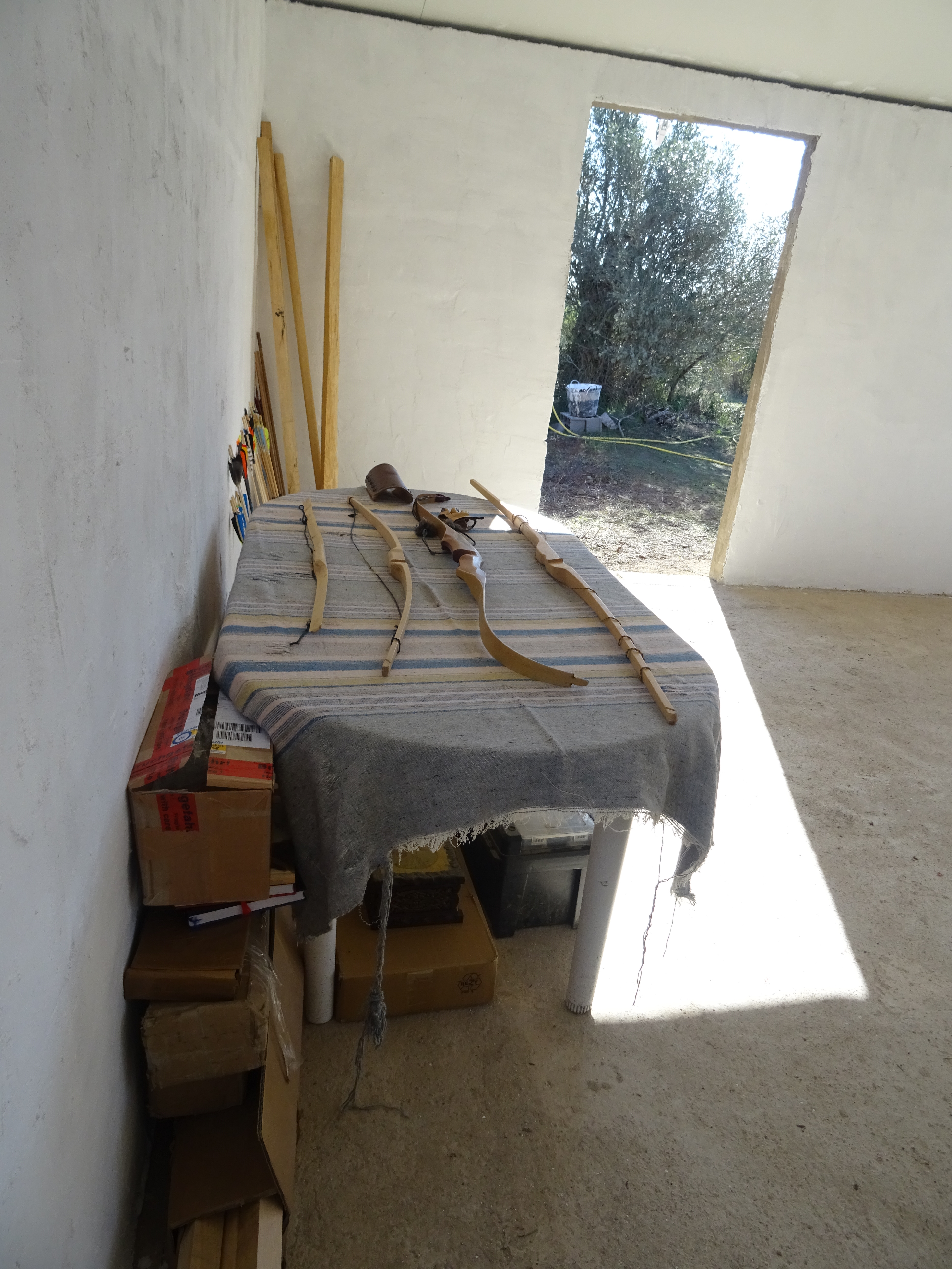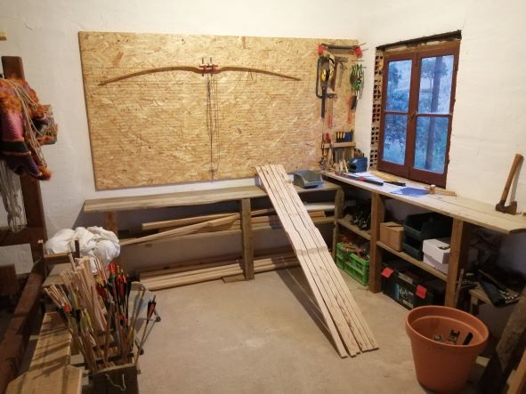 In our workshop we have all the equipment to build your longbow. You will sleep in your tent and we will provide you with food and beverage. We have two bathrooms with shower and dry-toilet. A lake in front of our door to swim, cool down relax, enjoy pure nature and observe the wildlife will make the weekend real special!