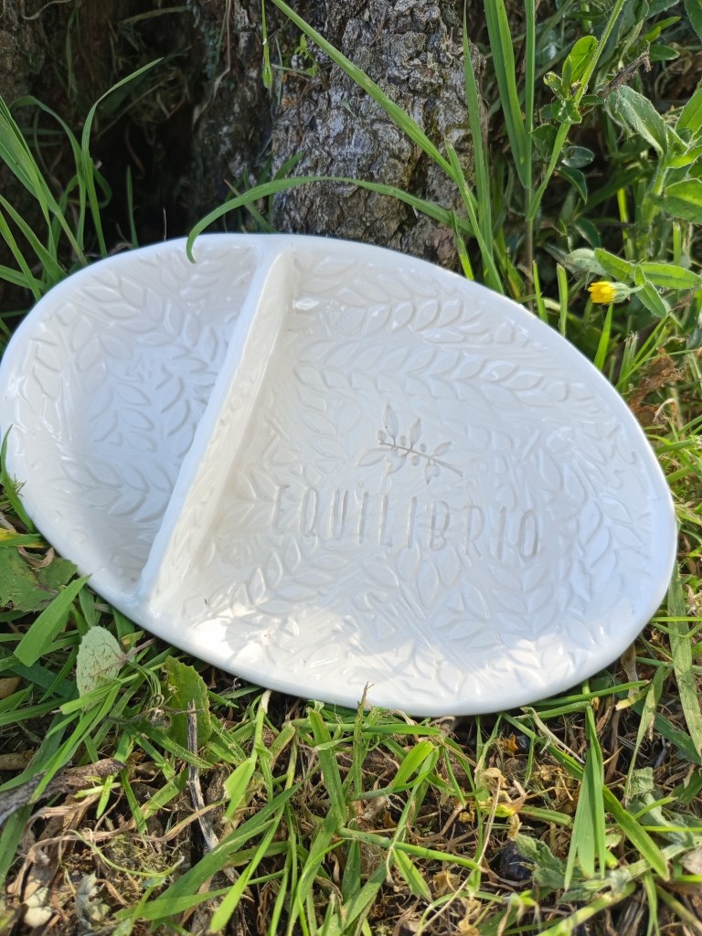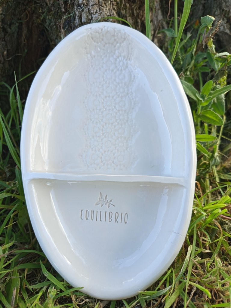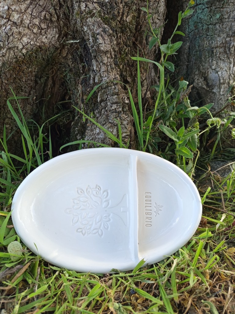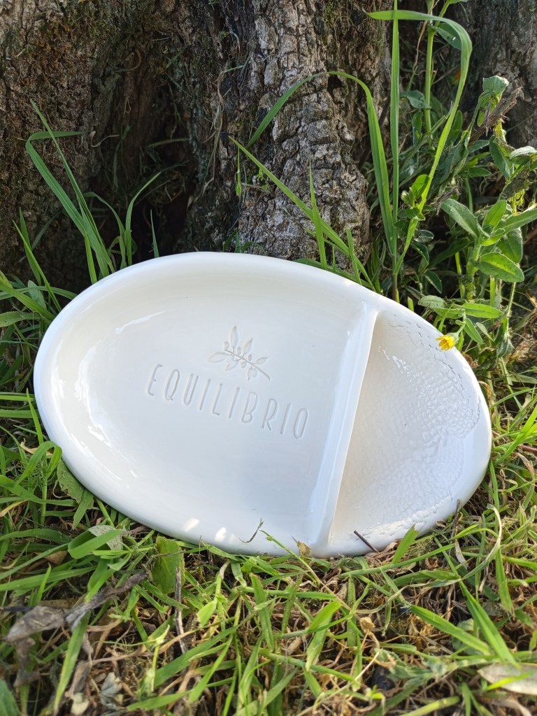 Dieses besondere Oliventray aus Keramik wurde von einer befreundeten Künstlerin (Aude Mouton) in Portugal vollständig von Hand gefertigt. Jedes Stück ist individuell gestaltet und mit einem feinen Muster sowie unserem Equilibrio-Logo versehen.