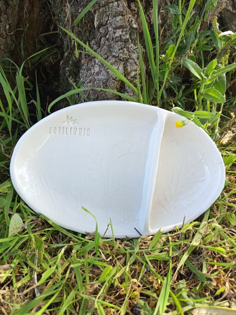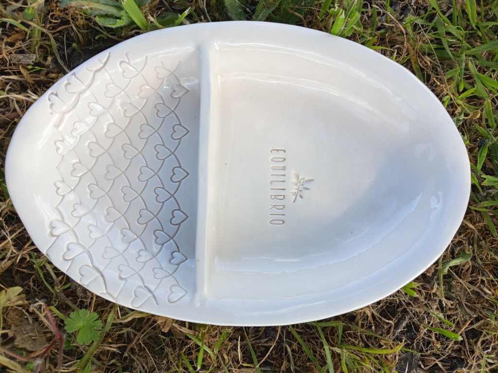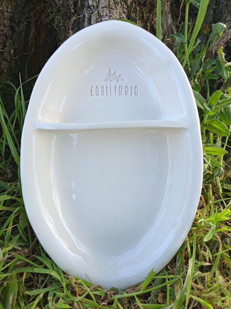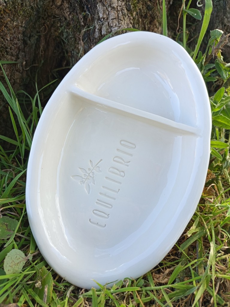 Dieses besondere Oliventray aus Keramik wurde von einer befreundeten Künstlerin (Aude Mouton) in Portugal vollständig von Hand gefertigt. Jedes Stück ist individuell gestaltet und mit einem feinen Muster sowie unserem Equilibrio-Logo versehen.
